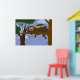 A cartoon illustration of a lazy brown sloth resting in a tree. This sloth is so slow that moss has started to grow on its back. This sloth poster is a perfect gift for lazy people.