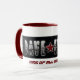 White coffee mug with red handle and rim. Dave Evans logo and KING OF ALL BADASSES in red letters.