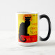 Magic Mug featuring Théophile Alexandre Steinlen’s poster Le Chat Noir (1896). A beautiful black cat sits next to French text advertising a cabaret tour. A great gift for fans of vintage art and Art Nouveau.
