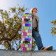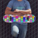 retro multicolored brick patterned old school skateboard deck