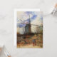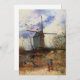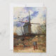 Le Moulin de la Galette by Vincent van Gogh is a vintage fine art post impressionism architectural painting featuring a windmill at the top of a hill in Montmartre, France with a farmer working his field.