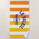 The Côte d'Azur beach towel is perfect for your getaway... orange and yellow cabana stripes with vibrant blue "Le Soleil Vacances" lettering. Personalise with the details of your sunny vacations... year and destination. Perfect for a family or friends beach trip or destination bachelorette or as a memento for a past trip. Matching accessories available in the Le Soleil Vacances Côte d'Azur Cabana Stripe Collection.