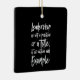 at christmass as a hanging decration for the chritmass tree.. its white porcline or cramic but very well made with added photo on one side.. also has a lovley red bag to keep it in.. execlent printed text in bold and black stands out well aganst the blue background of the photo.