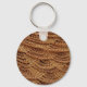 Keychain with Beautiful Yellow and Red Leaf on a layer of Succulents. Light brown woven pattern of other side.