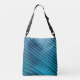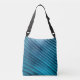 The abstract artwork by ZoeSPEAK, in shades of marine blue on this crossbody Tote Bag, was created from an original closeup photograph of a banana leaf. The diagonal bands are the ribs of the leaf.