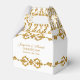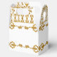 This mini favour gift box can only hold solid favours (not mints or things that would fall out) and is designed to coordinate with an entire range of reception table decor items to make your decorating beautiful and easy! NOTE: THIS IS A FLAT PRINTED DESIGN, THERE IS NO ACTUAL GLITTER OR GOLD ON IT. DESIGN COLLECTION: In crisp white with a golden glitter metallic look with a dimensional effect that is perfect to coordinate with a wide variety of weddings, bridal showers, business and formal reception events. This napkin has a diagonal layout with a stylised floral leaf damask pattern with draping tendrils that form a curtain showcasing your names and table numbers. The patterned damask is made with flowers, leaves, scrolls, swirls and elegant script like flourishes. Additional Reception, Shower and Party decor items to match are available. We can also do custom colour combinations for a small additional fee.