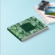A simple yet eye-catching elegant seamless pattern featuring evergreen tropical monstera leaf foliage that has a dark green square inlay edged with real silver foil in the middle of the front cover. Three text templates for your custom wording appear on the front and your personalised title will appear on the spine, which is the same dark forest green as the inlay on the front. All of the text templates are real foil creating a timeless and luxury look to the cover.