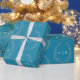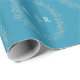 Leaf oval monogram drawing silver on teal aqua wrapping paper