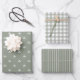 Men wrapping paper mix. Modern elegant dusky green wrapping paper sheets feature masculine leaf pattern design in combination with green gingham and white pinstripes. The patterns are created as vector files and can be enlarged or reduced as desired, the print always remains sharp. Much joy in giving away © yBEE PAPERIE