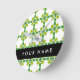 Leaf Pattern, Green Leaves, Your Name Round Clock
