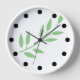 Leaf Pattern Minimal Sage Green White Simple Gift Clock