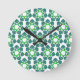 Leaf Pattern, Pattern Of Leaves, Green Leaves Round Clock