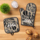 Leaf Tiki Black Hawaiian Tropical Oven Mitt & Pot Holder Set