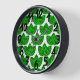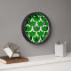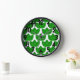 This wall clock has a Scandinavian design of leaf trios repeating across the design in three shades of green.
