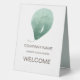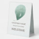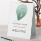 Extend a fashionable welcome to your esteemed delegates attending the company event or visitors stepping into our workplace. The contemporary approach features an exquisite large eucalyptus leaf positioned at the top, complemented by elegant typography below. This delightful design allows for easy personalisation of your company name and warm welcome message. Any updates made to the words will seamlessly reflect on both sides, as this captivating design graces the front and back alike.