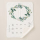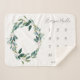 This design features leafy shades of green with a beautiful botanical wreath and modern grey text.