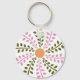 This design is a leafy flower art. It is in a circle pattern of alternating colours. This leafy flower art design looks great on this Keychain