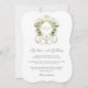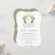 A design fit for a fairytale wedding, this unique invitation has an ethereal leafy green wedding crest with magical swirls and flourishes. So unique with an elegant yet earthy natural appeal, this monogram crest can serve as the bride and grooms logo throughout the wedding suite of products. The monogram initials match the gold colour in the crest and the invitation text is in a soft charcoal grey. The bride and groom's names are spelled out in a handwritten script type face. The elegant yet simple text template is ready to personalise with your wedding details. This invitation is a versatile choice for weddings at any season of the year and for any wedding venue, whether a solemn religious ceremony or a secular type affair at a banquet hall, winery, museum, restaurant, private club, or a rustic wedding outside in nature. This invitation is available in a variety of shape styles (shown here with a warm sage green back with a notched shape) as well as many different paper types and weights.