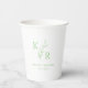 Leafy Initials Wedding Rehearsal Engagement Party Paper Cups