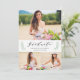 This leafy graduation collage photo announcement design features green floral laurels and a pale green background.