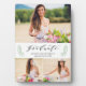 This leafy graduation collage photo announcement design features green floral laurels and a soft script text.