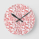 Leafy Red Pattern Modern Elegant Berries Round Clock