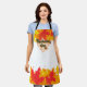 Wearing our holiday apron, you'll be the host or hostess with the mostest serving Thanksgiving dinner! Our cheery apron features elegant typography with swirls and autumn maple leaves in bright seasonal colours--red, yellow, and orange! + Image Credit (Words and Spirals): Unmailed, embossed, divided back era (1907-1915) postcard, original publisher unknown, from the designer’s private collection. + Image Credit (Border): Autumn leaves by Alexey_Hulsov via Pixabay.