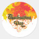 Leafy Typographic Thanksgiving Day Words Classic Round Sticker