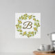 Chic foil print, with a gold foil and green leafy wreath, with a single letter gold foil monogram, in the middle. Personalise the letter for a lovely little gift idea.