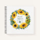 Beautiful Budget Priced couples bucket list notebook featuring watercolor illustrated Sunflowers wreath, designed by LeahG on behalf of the Low Budget Wedding Network® where the lowest prices are guaranteed. Personalise this bucket list journal with couples names,, add a tile and wedding date (featuring LeahG's signature 'dot' motif). For a free wedding planning guide and free wedding checklist printables visit our website www.lowbudget.wedding.