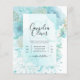 Pretty sea glass aqua blue teal coloured flowers with gold leaves feature on this modern elegant wedding invitation.