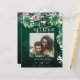 Modern trendy Emerald Green tropical island leaves wedding save the date with text template fields both sides. Coordinating items with this design can be found in the attached collection which includes wedding invitations, rsvp, save the dates, welcome sign, stickers, programs, menu, bridal shower invitations, rehearsal dinner, nuestra boda invites, budget invitations and more. This design theme is perfect for your destination, beach, tropical island, summer wedding. Design by registered brand LeahG.
