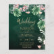 Modern trendy Emerald Green tropical island leaves and flowers invite with text template fields both sides. Coordinating items with this design can be found in the attached collection which includes wedding invitations, rsvp, save the dates, welcome sign, stickers, programs, menu, bridal shower invitations, rehearsal dinner, nuestra boda invites, budget invitations and more. This design theme is perfect for your destination, beach, tropical island, summer wedding. Design by registered brand LeahG.