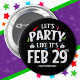 A fun & unique leap year birthday design for a leap day baby birthday boy or girl lucky enough to have a Feb 29th leap day birthday! Celebrate your unbirthday this non-leap year & party like it's leap day! Features "Party Like It's Feb 29th" funny leap day birthday meme & leap year birthday hashtag w/ smiling frog wearing a crown in a colourful birthday party theme graphic. Fun for leaplings of all ages!