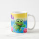 Leaping frog party custom NAME ceramic mug. Leaping frog party custom ceramic mug gift. One of my favourite illustrations. This little leaping frog loves birthdays and parties so much that he's jumping right out of the picture. Perfect for any kid's party ware, you'll find her on cards, invites and plates and various kids apparel. All with customisable ages and names for the perfect tailored party.
