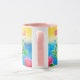 Leaping frog party custom NAME ceramic combo pink mug. Leaping frog party custom ceramic mug gift. One of my favourite illustrations. This little leaping frog loves birthdays and parties so much that he's jumping right out of the picture. Perfect for any kid's party ware, you'll find her on cards, invites and plates and various kids apparel. All with customisable ages and names for the perfect tailored party.