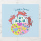 This colourful sparkling wine label features my ebullient design of a trio of Hares leaping over a cluster of brightly decorated Easter Eggs.