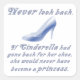 Never look back. If Cinderella had gone back for her shoe, she would never have become a princess. Live every day to the fullest, and never look back; no matter how bad something may appear, there is no telling what good may come of it. You only live once, don't waste time on regrets! A lovely design with glass-like writing, and of course, the iconic Cinderella's glass slipper.