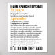 Learn Spanish It'll Be Fun They Said Funny Poster