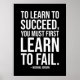 Learn To Fail To Succeed - Hustle, Gym, Success Poster