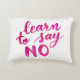 Learn to say no inspirational quote. Hand-written pink inspirational quote on accent pillows.