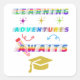 My Learning Adventure Awaits" design captures the excitement of the first school day with vibrant colours and dynamic elements like stars, arrows, and pencils. A book and a glowing light symbolise the journey of knowledge, making this design perfect for celebrating the beginning of a new educational adventure.