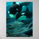 Ergens in de Atlantische Oceaan leert een jonge orka hoe hij moet jagen op de glinsterende scholen makreel. Digitaal geschilderd.