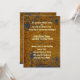 This wedding invitation features a vintage design of western tooled leather (a printed effect) trimmed with navy blue floral lace.