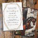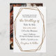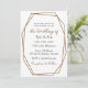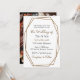 Simple Copper and white minimalist wedding invitations with geometric lines. The back is a graphic of leather and lace with a wood horse statue.