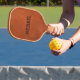 This personalised pickleball paddle features a printed leather-look background with customisable text. Class up your own pickleball game, or give as a gift!