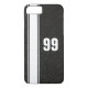 Simple and classic Black Leather & White Striped Sports Team Jersey Numbered iPhone Case. Great for dads, brothers, grads and friends. Customise with a name and/or jersey number.