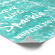 Leave a Little Sparkle Wherever You Go Quote Prints and Posters with cool aqua bokeh sparkles background and white typography, plus white sparkle edges. See more motivational quote posters at Quote Life, (link below)