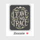 Leave no trace hiking sticker. Hiker scout clean trail trash. Mountains camping respect nature vintage stickers.
