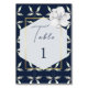 leave Pattern And Frame Navy Blue Floral Wedding Table Number